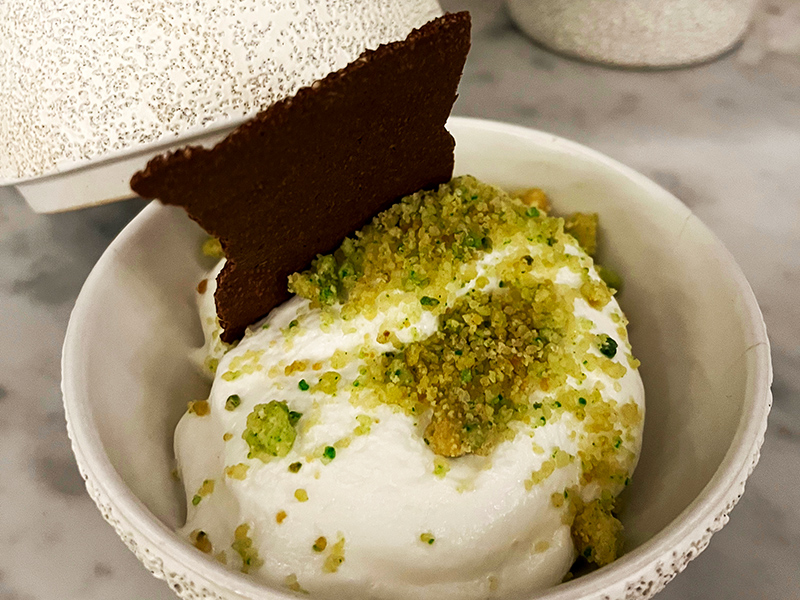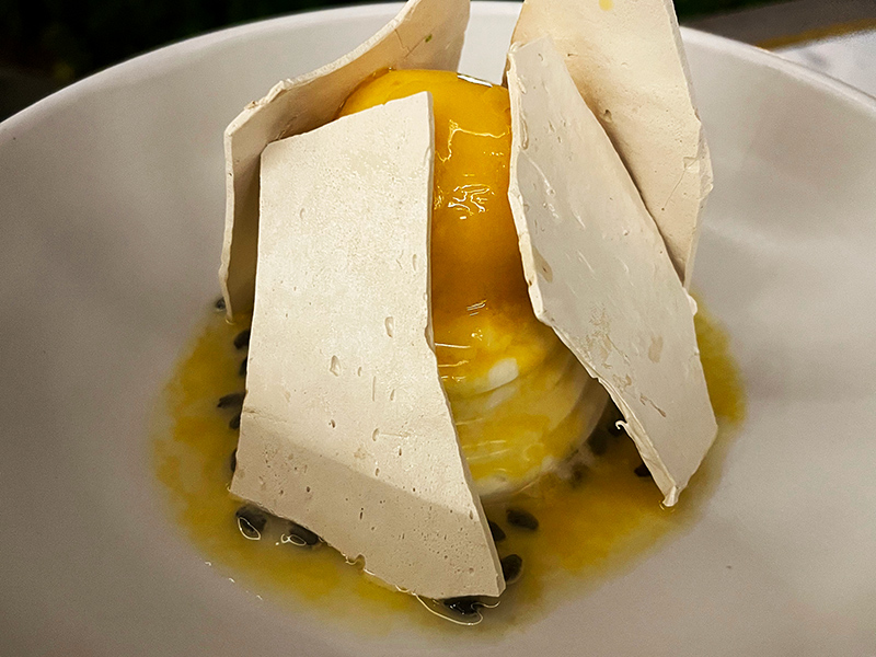 Selain Kopi dari Kintamani, Bangli juga dikenal sebagai penghasil buah Markisa dengan kualitas terbaik. Ikan restaurant mendukung gerakan menggunakan produk lokal yang berkualitas dan segar, dengan menggunakan buah Markisa dari Bangli yang memiliki rasa asam dan manis yang seimbang serta kaya akan kandungan antioksidan sebagai bahan utama dari dessert. Buah markisa segar kemudian diolah menjadi curd disajikan dengan cream, serta meringue untuk disajikan menggunakan dessert plate.