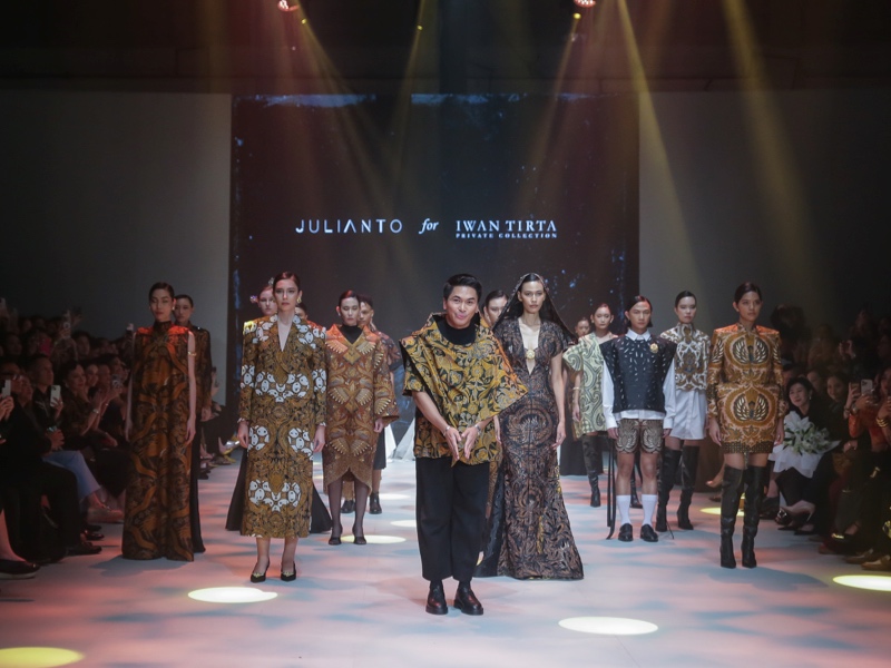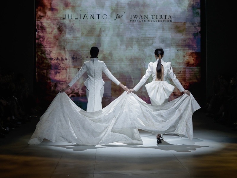 Sementara itu, Iwan Tirta Private Collection, dalam kolaborasi dengan Julianto, menyuguhkan "Jagad Rasa". 30 tampilan yang menafsirkan ulang kemegahan motif klasik dalam siluet kontemporer. Dominasi warna sogan, emas, dan putih menghadirkan kesan timeless, sementara dua kebaya putih modern menjadi simbol evolusi kebaya menuju gaya yang lebih universal namun tetap elegan.