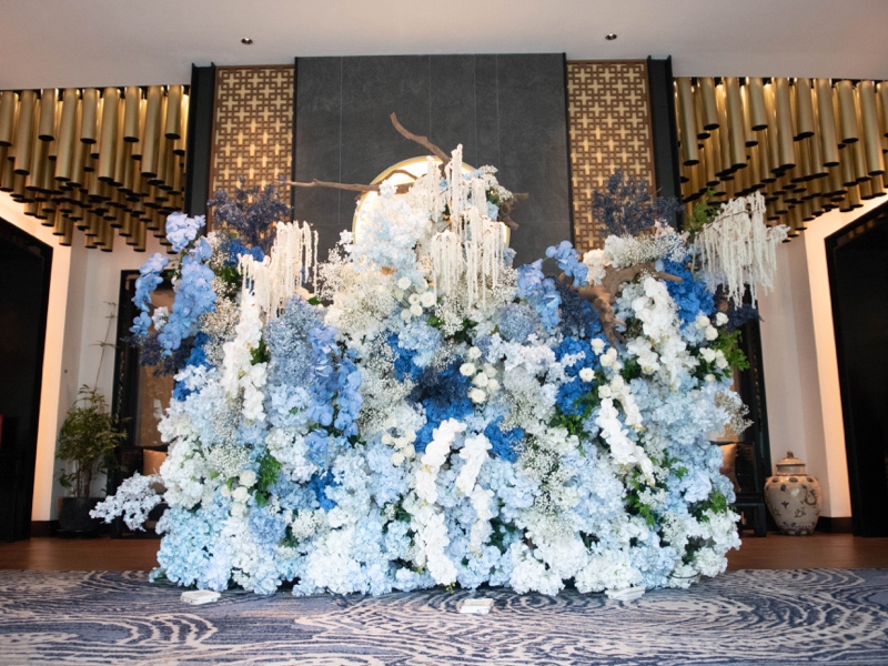 Backdrop bunga bertema chinoiserie dari Niccatelier