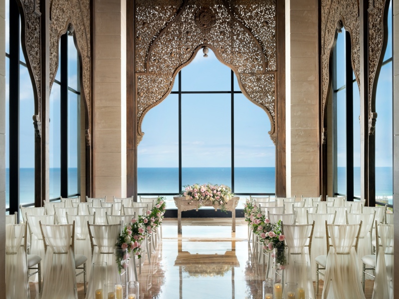 Bagi pasangan yang menginginkan perayaan berskala lebih intim, Amala Chapel dan Kimaya Chapel menawarkan pendekatan yang lebih personal. Kimaya Chapel, dengan desain kaca dan latar Samudra Hindia, menghadirkan suasana terang dan terbuka untuk perayaan anggun dan megah.