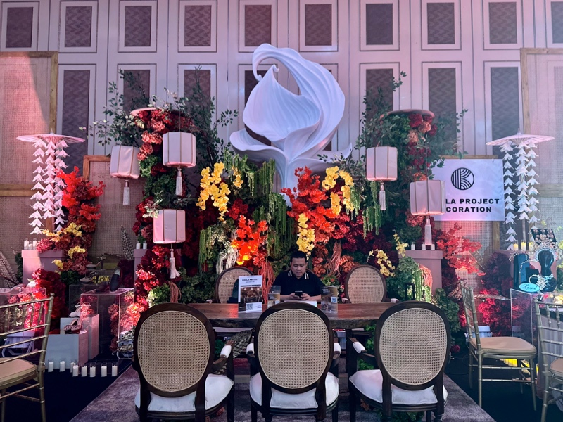 Sementara itu, Keola Project menghadirkan nuansa Peranakan dalam palet yang lebih vibrant, memadukan elemen kayu rotan dengan bunga berukuran besar menyerupai sculpture—memberi dimensi baru pada pelaminan yang semakin artistik.