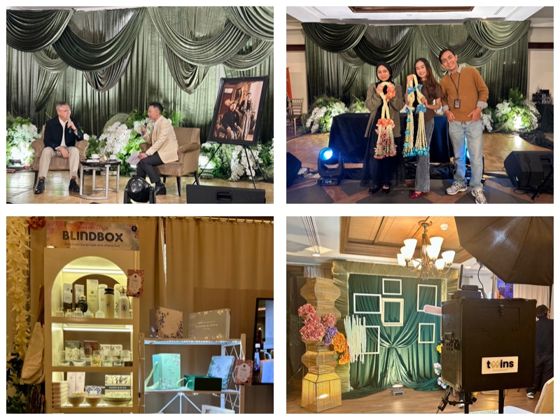Di sini, atmosfer terasa lebih santai. Tembang keroncong modern dari Taman Langit Entertainment mengalun ringan, mengiringi para calon pengantin saat memilih souvenir, undangan, hingga mengabadikan momen di Twins Photobooth—di mana hasil foto bahkan dapat dibawa pulang dalam bentuk magnet, yang tengah viral di Amerika Serikat.