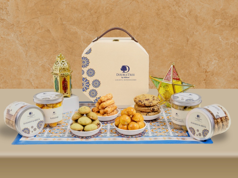 Signature Ramadan Hamper mereka menarik — berisi DoubleTree Signature Chocolate Chip Cookies, nastar, kaastengel, hingga White Chocolate Pistachio Cookies khas Turki menjadi hantaran atau hadiah pas untuk keluarga dan kerabat.