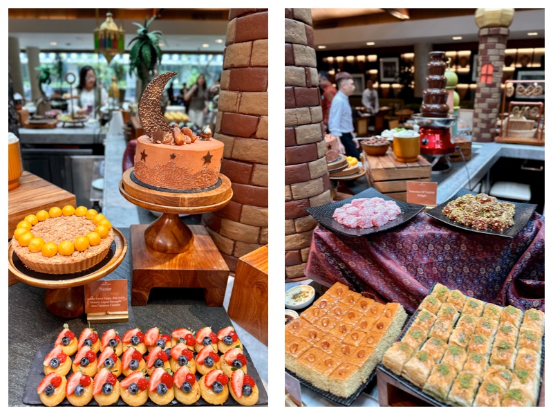 Suasana yang tenang menambah kenikmatan menikmati jajanan pasar Indonesia, dari kudapan gurih hingga manis yang disajikan dalam porsi mini, setiap gigitan menghadirkan kenangan yang hangat. Trio Bakwan, Bakso Bakar, dan Tahu Isi membangkitkan cita rasa khas Jakarta. Sementara pilihan manis lokal berpadu dengan Turkish delight seperti Basbuousa dan klasik Umm Ali, menutup momen berbuka dengan lembut.
