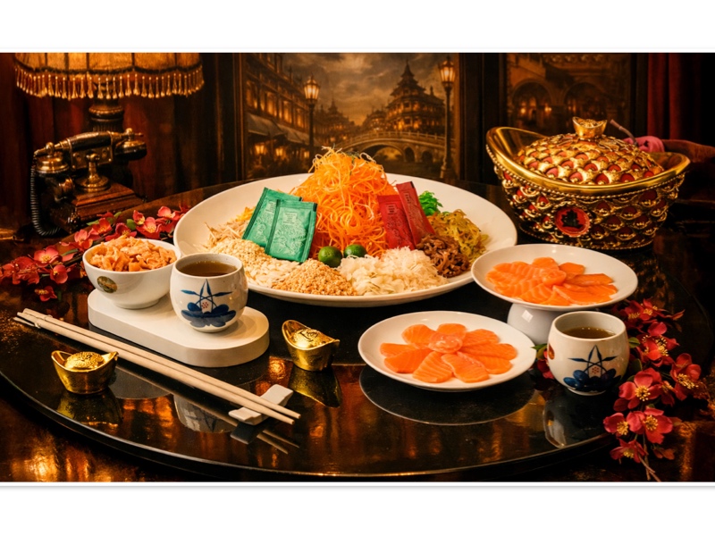 Dalam jamuan ini, Yee Sang saat juga hadir sebagai bagian penting dari tradisi. Disajikan dengan salmon, ubur-ubur, kacang plum, pomelo dan lainnya. Yee Sang tersedia dengan harga Rp 488.000++ untuk 5 orang dan Rp 828.000++ untuk 10 orang.