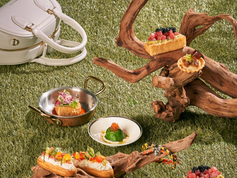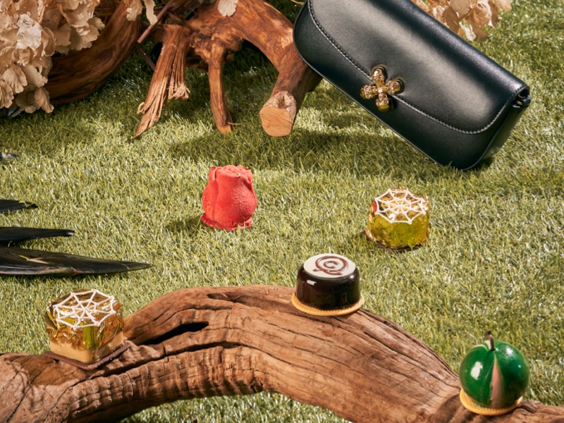 Bagian Sweet Treats menjadi highlight visual. Disajikan di instalasi menyerupai pohon dengan elemen tanah dan rumput. Sentuhan dry ice menambah atmosfer teatrikal, menangkap DNA McQueen yang bold namun tetap elegan.