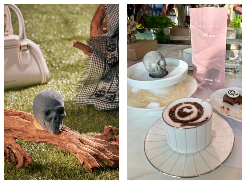 Identitas McQueen dihadirkan secara subtle, baik dalam 13 menu afternoon tea maupun presentasi fashion di dalam ruang. Sejumlah item dapat dinikmati sekaligus dibeli langsung di Conservatory, dari scarf bermotif skull yang kembali digandrungi, hingga aksesori, tas, sepatu dan koleksi ready-to-wear yang meyatu dengan interior.