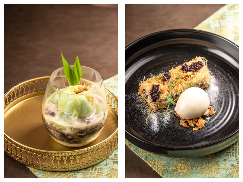 Sebagai penutup, Bubur Pandan Kinca Nangka dan Kunafa Ketan Item memberikan sentuhan manis yang ringan namun tetap memuaskan.