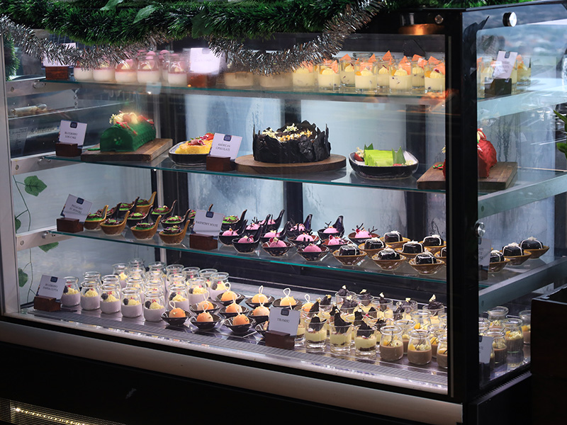 Menutup A Royal Christmas Feast, tim kuliner dari hotel akan menyajikan Signature Cakes & Pastries yang menampilan Brandy-Soaked Christmas Fruit Cake dan Chocolate Walnut Cheesecake. Sedangkan Festive Log Cakes akan disajikan Classic Chocolate Bûche de Noël, sebagai simbol classic Christmas dessert, serta Strawberry & Vanilla Yoghurt Roll.